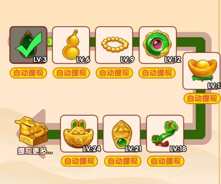 6、合成出指定等级的物品即可获得额外的提现红包,并且等级越高,能够拿到的奖励就会越多。