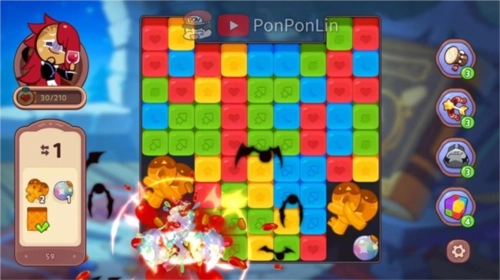 与搭配上场的饼干角色就会与日俱增,根据关卡的不同来搭配1只特殊的饼干上场吧!(上图为吸血鬼饼干能消除固定5格的障碍物)