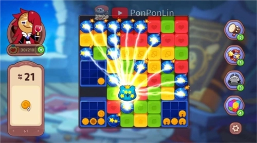 姜饼人魔女之城是一款益智消除,以玩家扮演饼干透过消除指定果冻方块+障碍物来达成过关条件来闯关,并可搭配从关卡/活动奖励/商城获得的道具来搭配应用,面对各种不同的难关。