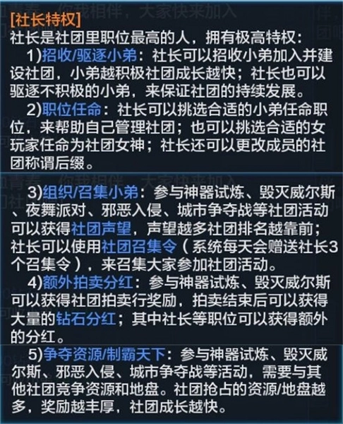 创建社团时,你需要填写社团名称(这个名称会展示在角色头顶,所以建议起一个既好听又霸气的名字)和社团宗旨,同时要消耗1000钻石。毕竟花费了这么多钻石创建社团,作为社长自然能享受一些专属特权。