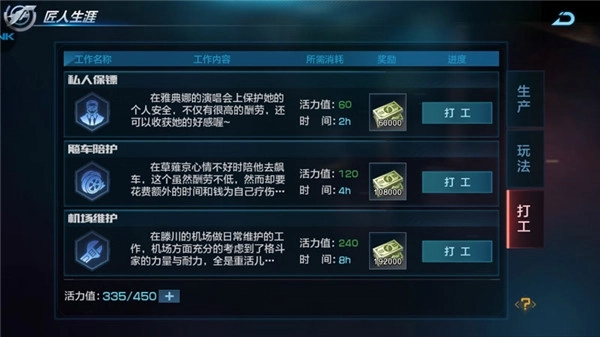 打工可以消耗活力值和一定的时间来获得钞票奖励。