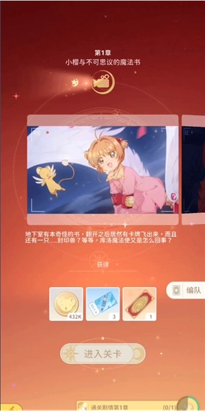 2、点击“进入关卡”按钮,即可前往第一章“小樱与不可思议的魔法书”。