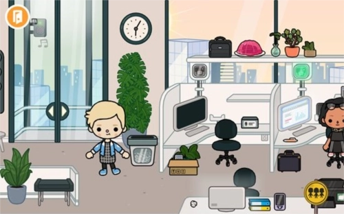 2、我们随意点击一栋大楼就能进入内部,比如选择商业楼宇,进入后会看到里面是一间办公室,能看到不少办公用品,还有许多正在工作的人员。
