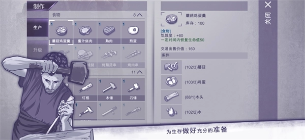 消灭好小怪物之后,我们可以先回庇护所一趟,补充一下食物和武器资源等,最重要的是: