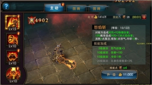 图腾依靠技能点和金币进行培养,培养越多,战力越强大;