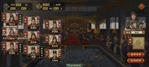 2.新增敕令诏书玩法:当游戏进程推进至国族阶段后,玩家能够在每年年末的朝会中,消耗中朝积累点中的某一项资源,来发起一系列敕令诏书的颁布。这些敕令诏书生效后,会在短时间内为玩家带来强效的机制层面增益效果。