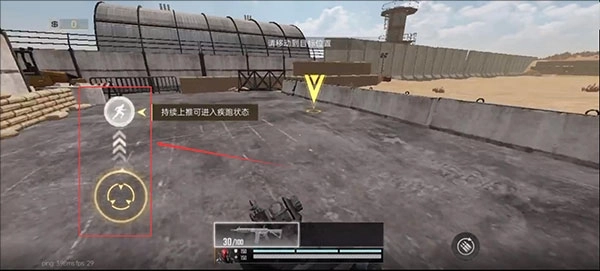 3、用左手触控屏幕来操控人物的行动状态,持续向上滑动屏幕就能让人物进入疾跑状态