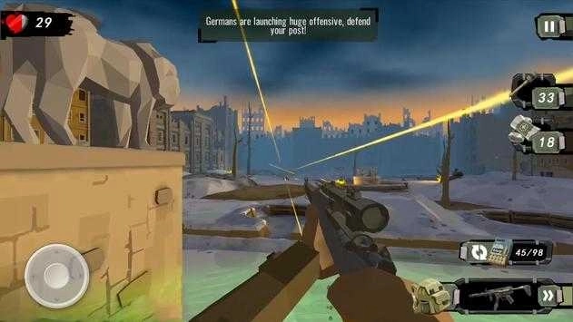 《战争英雄:二战求生》是一款紧张刺激的射击类手机游戏,游戏内场景丰富多样,众多关卡等你来挑战。玩家将操控角色,灵活运用各类武器,全力击败所有敌人。游戏画面精致,操作简便,感兴趣的话就来试试吧!