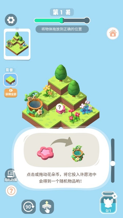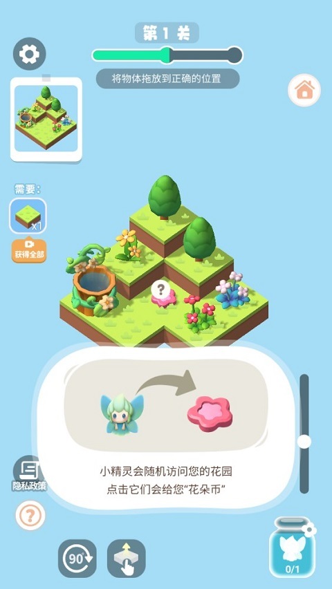 《小小花园》是一款趣味十足的经营养成类游戏,玩家在游戏中化身为造物主,既能自由规划打造专属的梦幻花园,也能开启闯关模式,完成各类有趣的任务挑战。游戏内关卡丰富多样,每一关都有独特的通关要求,玩家通过向许愿池投入硬币来推进关卡,整个过程充满乐趣。