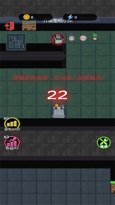 要想赢得胜利,就得先击败猛鬼。躲在房间里积累经济,能让你存活更久;猛鬼会持续升级,你也得及时提升塔防建筑的等级,这样获胜才会更轻松。