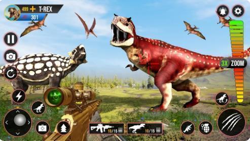 恐龙狩猎机械恐龙游戏是一款极为逼真的恐龙狩猎射击类游戏,玩家在游戏里可以扮演猎人或者探险家的角色,主要目标是在遍布恐龙的环境中搜寻并狩猎各式各样的恐龙。作为一名专业的恐龙狩猎专家,你在狩猎恐龙的过程中需要保持专注与专业的态度,屏气凝神,精准瞄准,并且运用狙击射击和瞄准的技巧。对这款游戏感兴趣的玩家,赶紧来体验吧!