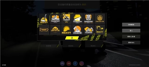 1、把重型机械与建筑模拟器安装好后,打开进入游戏,就能看到各种新游戏以及其他功能选项了;