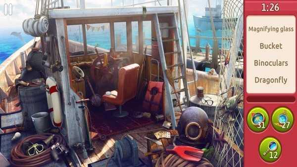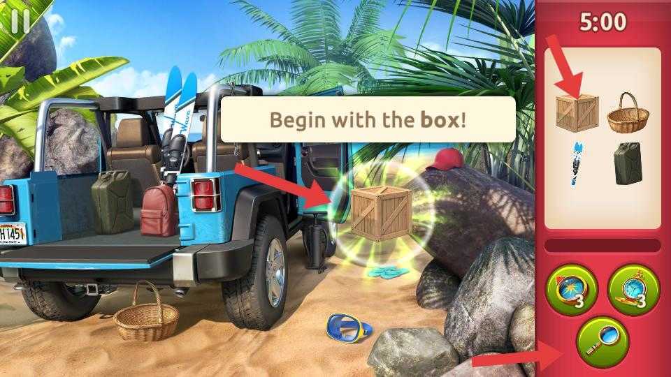 2、在关卡场景里,按照“Begin with the box”的提示,去寻找木箱之类的物品,右侧设有物品列表,还能利用放大镜等道具来帮助搜寻。