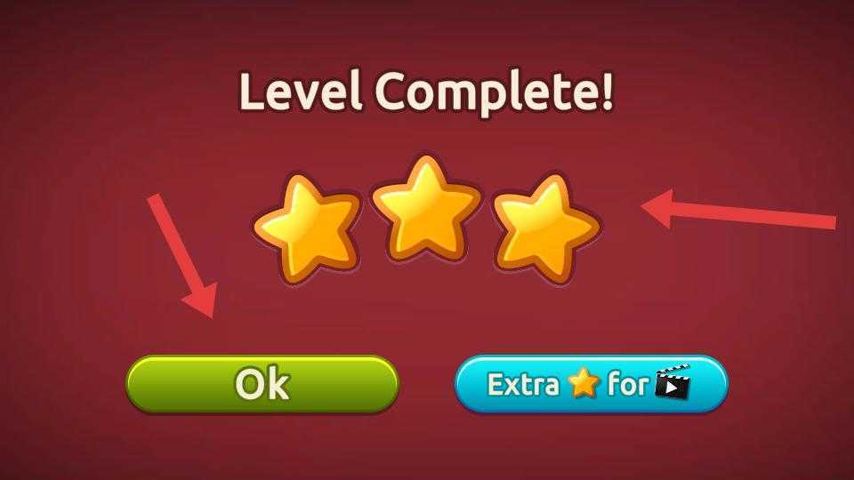 4、顺利通过关卡后,界面会显示“Level Complete”并给出星星评价,此时可以点击“Ok”按钮确认,也可以选择观看视频来获取额外的星星,之后就能进入下一关。
