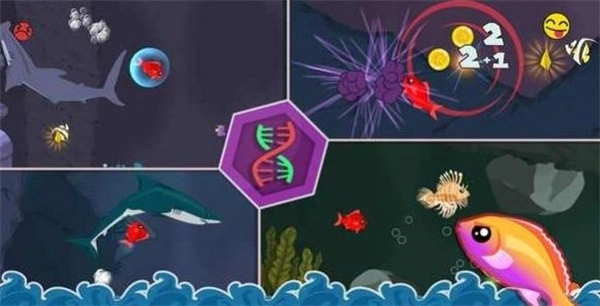 你可以操控自己的小鱼在游戏模式里开启进化之旅,这里有不少有趣的任务等待你去完成,解锁更多海域地图,迎接各种各样的挑战任务。