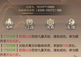 大家不难发现,灵石的获取量和技能书的持有数量关联紧密,而技能书本身又是提升角色属性的核心途径之一,所以即便当前阶段暂时用不上大量灵石,也绝对不能随意挥霍。地下地图的神游玩法每天有300次机会,这是灵石最主要的产出渠道,比如图20每天大约能带来6万左右的灵石收益。等达到分神境界解锁神游功能后,务必确保每天把这300次机会全部用完——哪怕最后100次的收益会降到80%,但用材料兑换灵石怎么算都不会亏本。