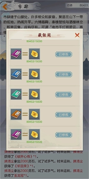 ①功德建议先用来购买藏经阁的书籍,之后再考虑市场里的书,因为藏经阁的书所增加的属性会更多一些。