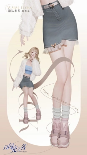 浅色系的针织堆堆袜,既和温柔风十分适配,又能提升甜度。