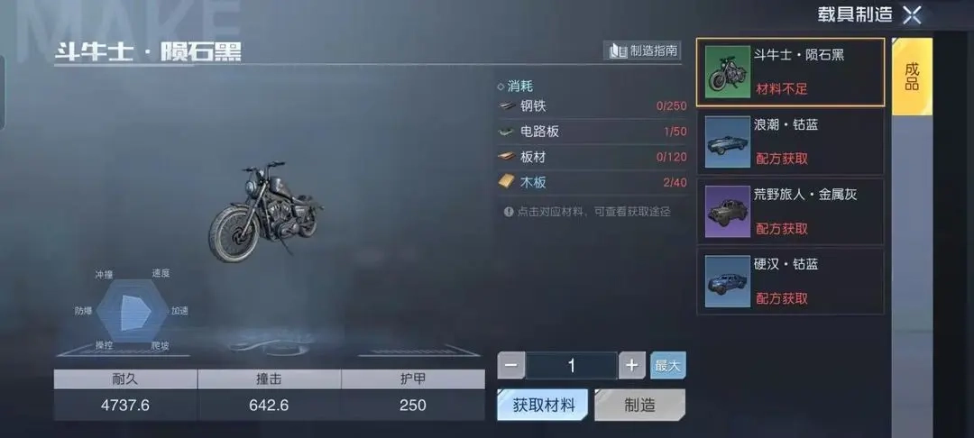 《黎明觉醒:生机》拥有一张庞大的无缝地图,这也带来了新的困扰——前往任务地点的路途遥远,耗费时间过长。部分未解锁路牌的区域无法直接抵达,这时载具的重要性便凸显出来。游戏内提供摩托车、越野车、跑车等多种载具类型,能大幅缩短我们的出行时间,获取方式有购买以及通过图纸制作两种。