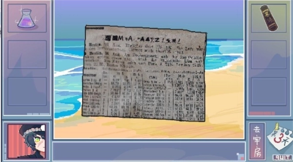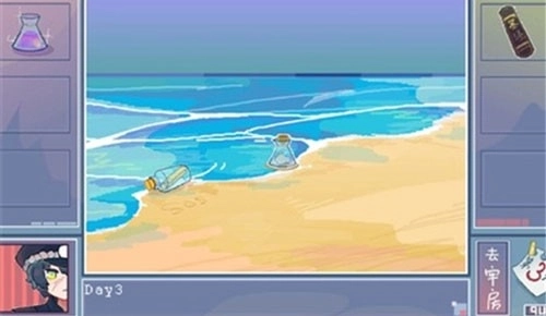 2、点击沙滩上的漂流瓶,能够搜集线索,还能触发男主的自言自语,以此完善剧情。