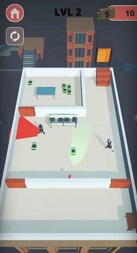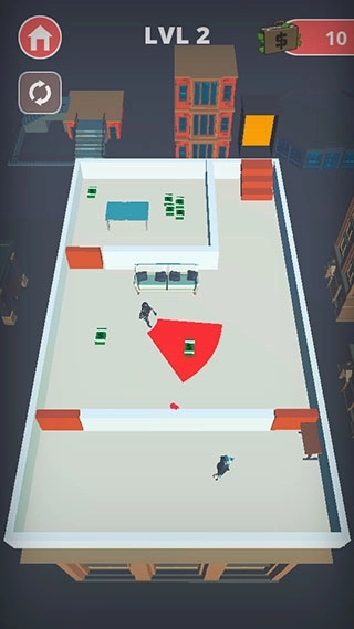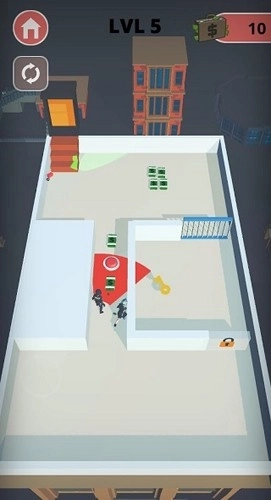 《不可能的抢劫2》是一款极易上手的休闲益智游戏,它有着独特又有趣的画面设计,玩法也十分诙谐搞笑。在游戏中,玩家要做的就是操控好自己手下的小偷。作为抢劫犯,你在偷完所有物品后,身后就会追来一大群警察,这时候就需要你躲避他们的追捕,这个过程非常考验玩家的操作能力。只要逃出警察面前的红色区域,你就能成功逃离啦,感兴趣的朋友快来挑战吧!