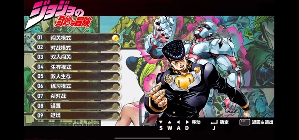 mugenjojo别天止水改是一款动作格斗类游戏,收录了《JOJO的奇妙冒险》系列中的众多角色,不少高人气角色都在其中登场。每个角色都拥有独特的招式与技能,玩家可以自由体验各类闯关模式。游戏操作简单易上手,通过基础的操作方式就能完成一系列挑战,战斗体验爽快流畅。只有熟悉每个角色的特性,才能顺利击败所有对手、赢得胜利,用娴熟的操作战胜更多强敌。