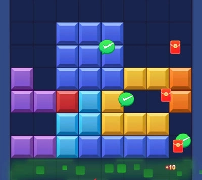2、当方块凑成完整的一行或一列时就会消除,系统会依据消除的行列数量来计算并给予积分。