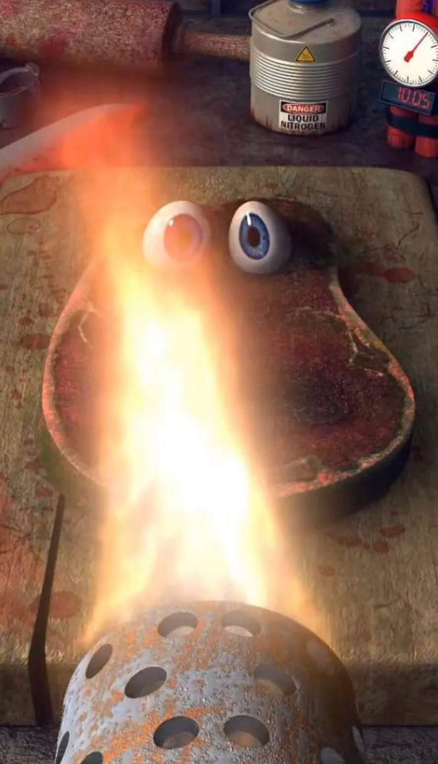 3、接着,玩家能挑选工具和查理(牛排)进行互动。比如,你可以用刀子切割查理,也可以用煎锅烹饪他。