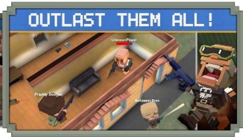 1、方块卡通画风的人物设计,热门吃鸡生存玩法;