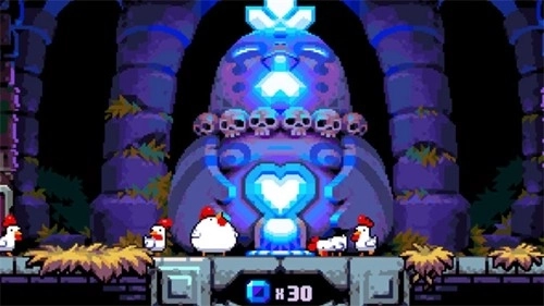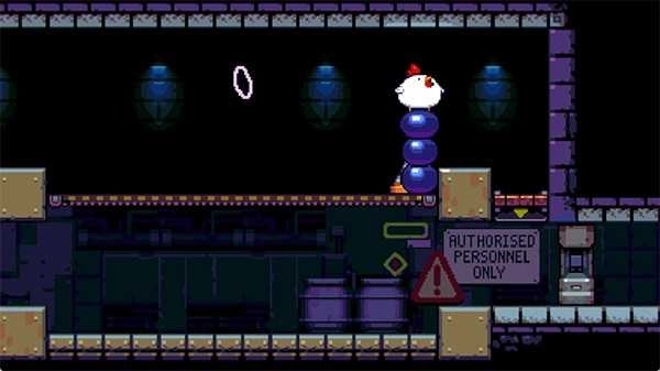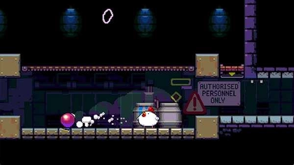 Nitrome旗下的像素游戏向来都是高品质的精品之作,这部《炸弹鸡》自然也不例外。游戏的背景设定相当有趣:BFC公司(建议和KFC来一场“较量”)凭借引入蓝色辣酱一跃成为快餐行业的佼佼者。某天,因为蓝色辣酱的缘故,一枚鸡蛋孵化出了一只会下炸弹的胖鸡,这只鸡就此踏上了逃亡之路。在闯关过程中,还能看到猪笼草工人的日常,以及他们留下的一些文字信息。游戏给人的第一印象源于开场LOGO——它会展示一份蓝色辣酱炸鸡套餐,那视觉效果简直让人极度不适,能感受到开发商满满的“恶意”XD。此外,游戏里还能看到不少马里奥的元素,比如可以上下连通的水管、踩踏怪物等经典设定。
