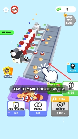 1、玩家需点击收集各类资源以制作甜点,随着生产线逐步升级,还能解锁自动化生产功能,从而减少手动操作所耗费的时间;