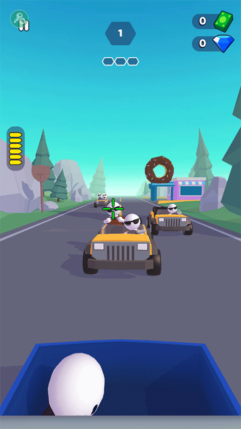 2、战斗过程中可以对敌人进行射击,比如头部、车轮等部位;敌人会以车辆为单位出现,每辆车有1到4人,只要击打司机或者车轮,就能直接淘汰这辆车。