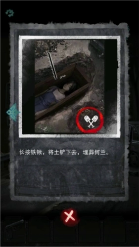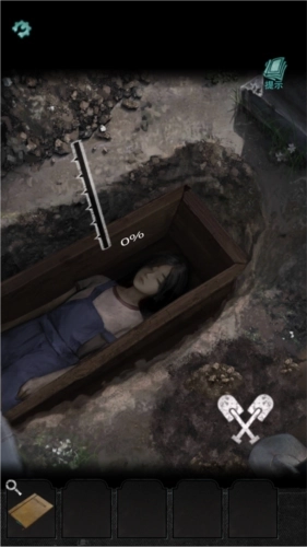 2、在棺材房获取《晾衣杆》后,点击白帆启动小游戏。通过铁丝打开山神像手中的盒子,取得《把手》;接着用把手打开浴室柜子,从中获得《镜子碎片》与《照相机》。