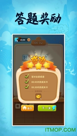 3、Q萌可爱的卡通游戏界面,充满趣味的成语探险之旅,助力解锁全新的荣耀称号。