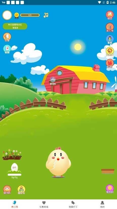1、每天要做的事都不难,核心就是完成签到、做完指定任务、给小鸡投喂饲料,这样就能获得收益了;
