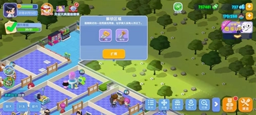 1、要是想装饰医院的室外区域,我们得先解锁对应的区域才行。第一个区域在7级的时候就能开始扩展,等扩展到你觉得合适的大小和规格后,就可以着手进行室外装饰了。