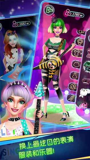 2、打造专属的吉他或其他乐器,挑选心仪的音乐曲目,站上绚丽多彩的舞台。