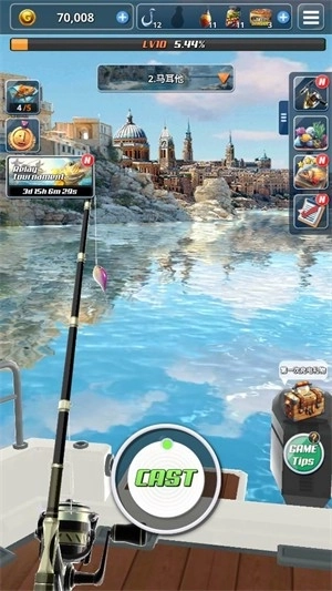 2、多场景地图切换功能:游戏内设有对应不同国家的特色钓鱼地图,这些地图需要玩家达到指定等级才能解锁;丰富多样的场景设计,能让玩家在不同地域体验钓鱼的乐趣,同时欣赏到风格各异的美景。