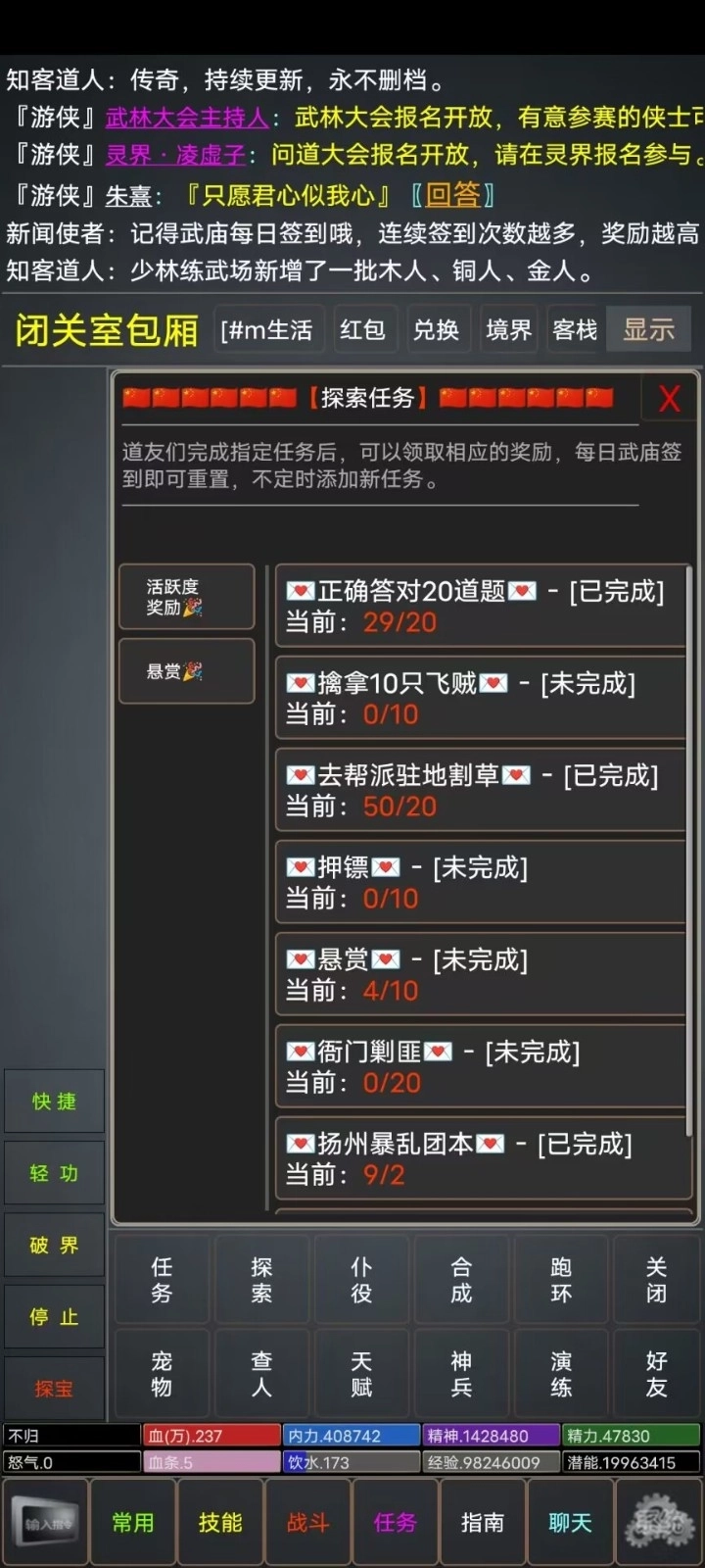 《仙行情缘》是一款让人沉浸其中的MUD游戏。它构建的绮丽世界、完善的角色成长体系、生动的玩家社交互动,再加上专业负责的管理员团队,都让我对这款游戏青睐有加。如果你热爱冒险,是个侠客题材的忠实粉丝,既享受和其他玩家并肩合作,也乐于参与竞技对决,那么这款游戏无疑是你的最佳之选!赶紧加入我们,开启专属于你的奇幻侠客征程吧!