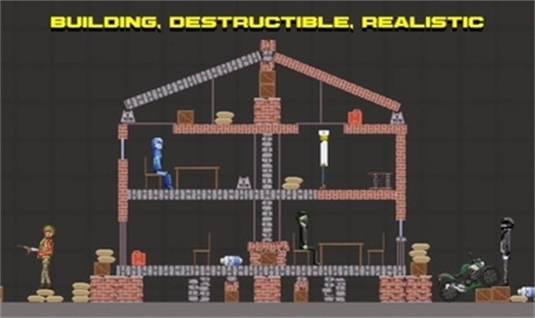2、你能够自由布置各类角色,还能与武器、炸弹、车辆、化学制品以及火、雷、力等自然元素进行互动,游戏元素的设计十分丰富;