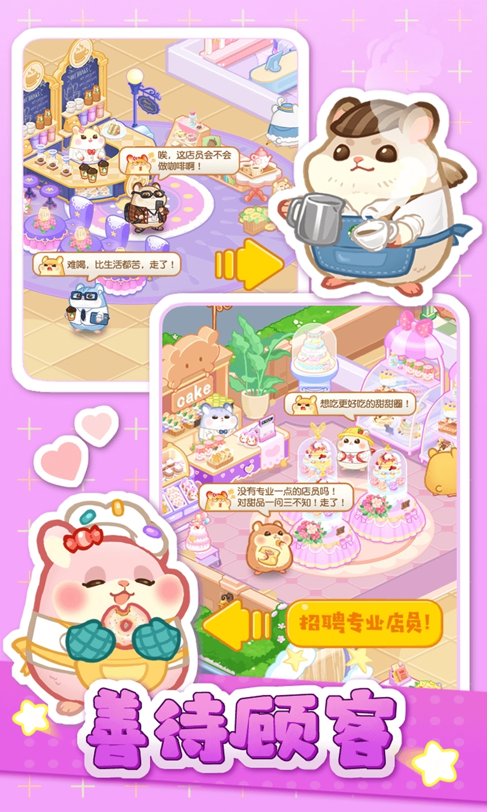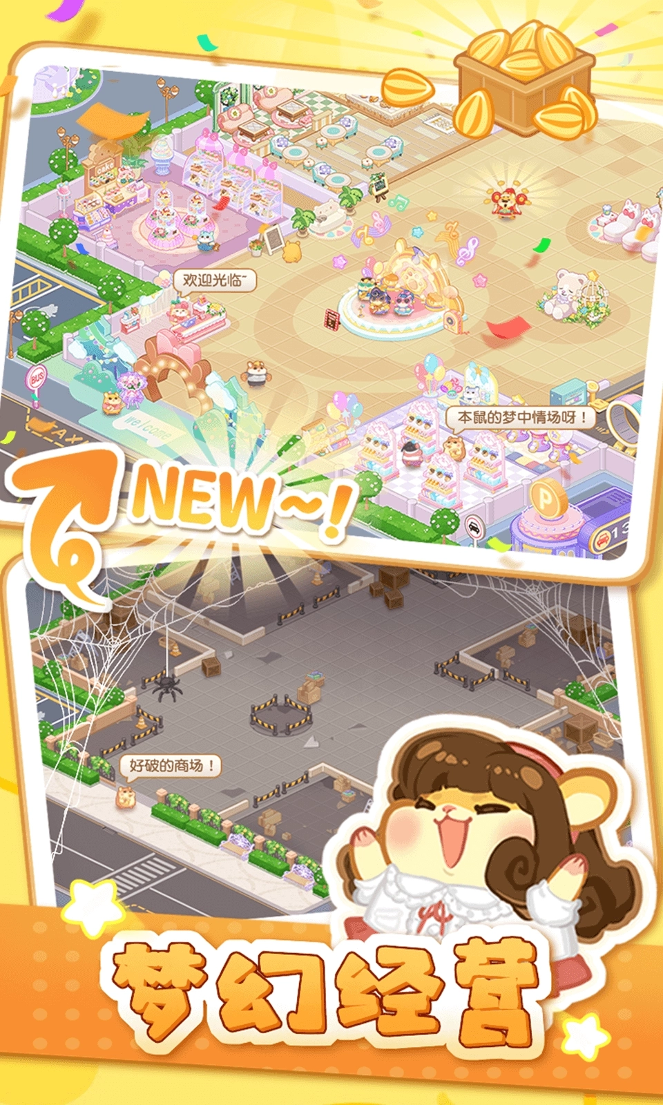 圆滚滚的Q萌仓鼠山竹意外继承了一家小小的商城,若想让商城重新热闹开业,就得招募活泼的仓鼠员工、开辟特色商店、研发新奇产品、完成各类订单,一步步把商城发展得更完善。这个玩法简单又休闲,还特别有趣,而且有超多软萌的仓鼠角色,个个圆滚滚的模样十分可爱!在经营商城的过程中,山竹还要耐心倾听员工们的小烦恼,一起打造出温暖又可爱的仓鼠专属商城呢。