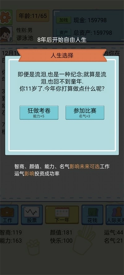 游戏里有各种各样的事件类型,能让你体验到不同的内容,完成更多任务还能帮助你提升属性。游戏的操作也十分简单,你可以尝试不同的工作,从中感受别样的人生乐趣,更能体验到特色重开后逆袭的快乐。