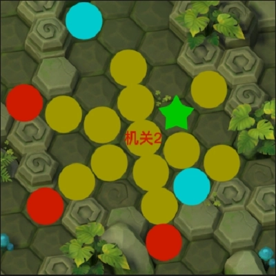 3、当你进入机关1和机关2的通道后,会遇到花瓣石阵,沿着黄线的路径就能通过花瓣石阵。