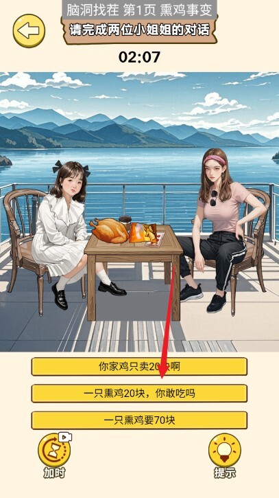 8、上滑右边小姐姐的口袋,将钱移动给左边的小姐姐