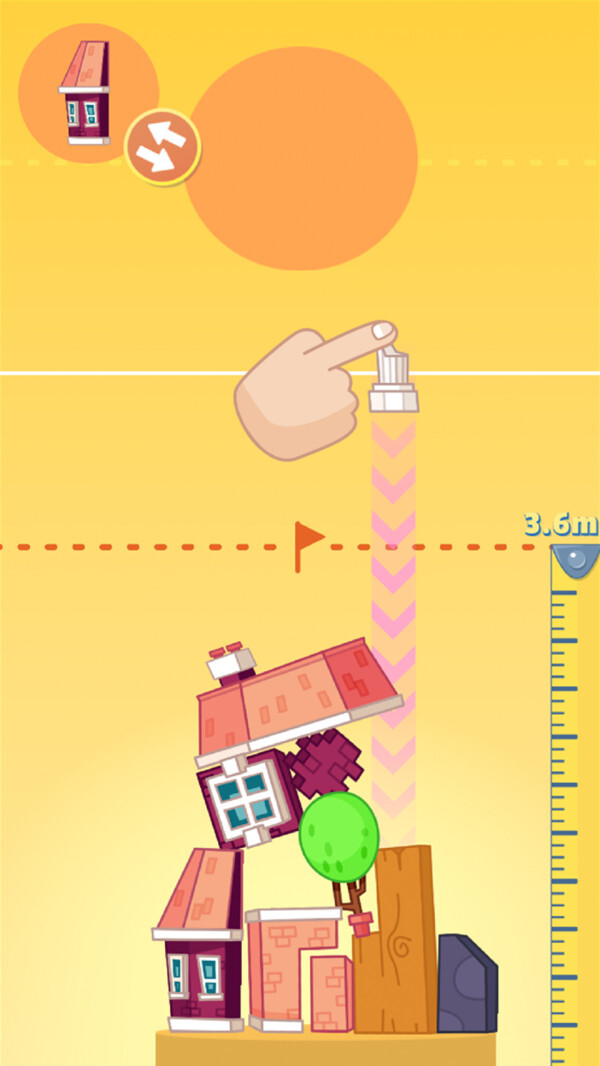 1、每个关卡都设有高度指标,堆叠得越高,能获取的积分就越多。