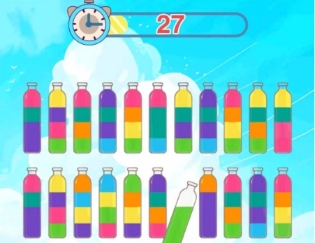 2、益智烧脑:这款游戏要求玩家依据颜色对水管里的水进行分类,再导入对应的水桶,十分考验玩家的逻辑思维与观察能力。