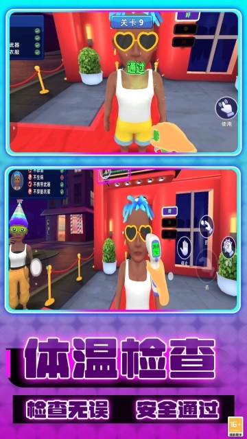 1. 策略闯关设计:玩家将扮演夜店保安的角色,凭借观察能力与逻辑分析来开展入场检查工作,需要在规定时间内完成多轮的闯关任务。