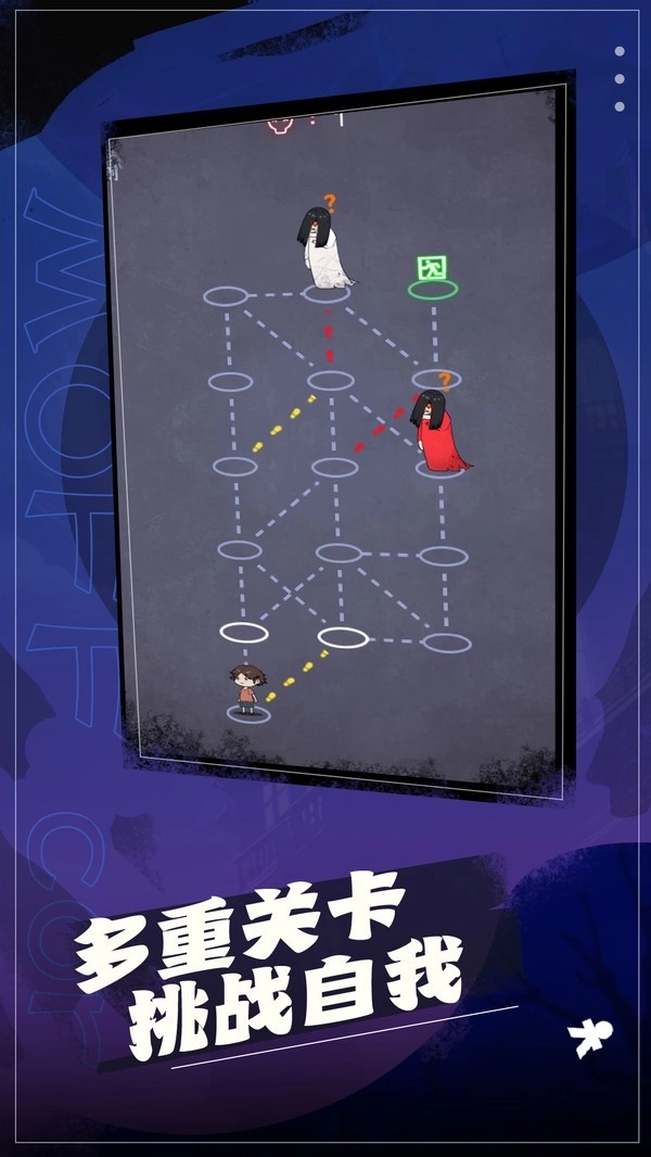 在一栋残破的大楼里,贞子和鬼新娘在楼内四处徘徊。玩家操控冒险者规划合适的行进路线,运用不同的移动策略来隐匿身形,避开贞子与鬼新娘的追捕,最终抵达安全出口。