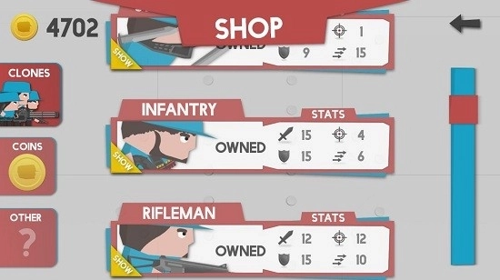 1、通过不断地升级可以在商店解锁更多新的小兵。