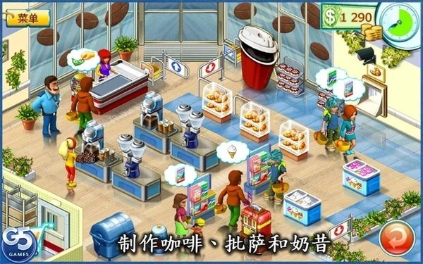 5.把赚到的钱用来升级货架、收银台和制作设备,解锁新的商品和场景,达成关卡目标来推动剧情发展。